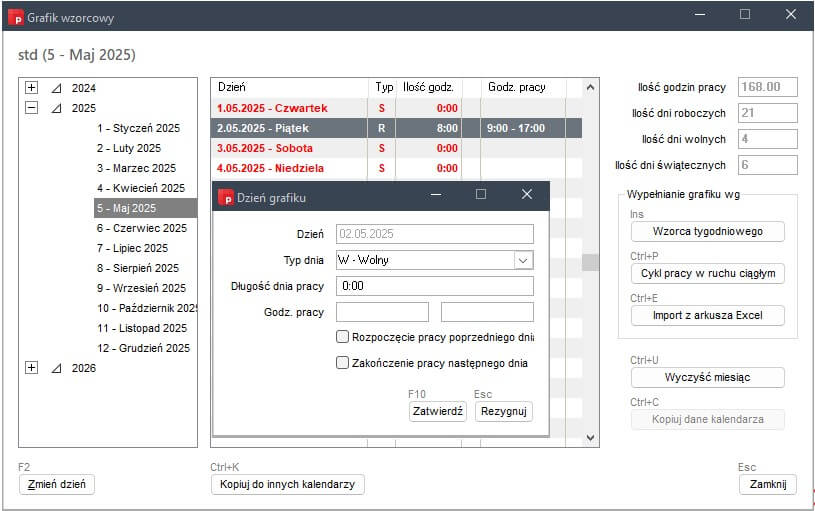 W ten sposób wszyscy pracownicy przypisani do danego grafiku będą mieli prawidłowy nominalny czas pracy w danym miesiącu. Operację tę należy przeprowadzić dla każdego grafiku wzorcowego zdefiniowanego w firmie.