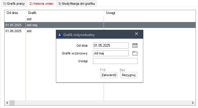 Następnie należy przeprowadzić modyfikację definicji grafiku tak jak w pierwszym przypadku oraz skorzystać z opcji zmiany grafiku na jeden miesiąc.
