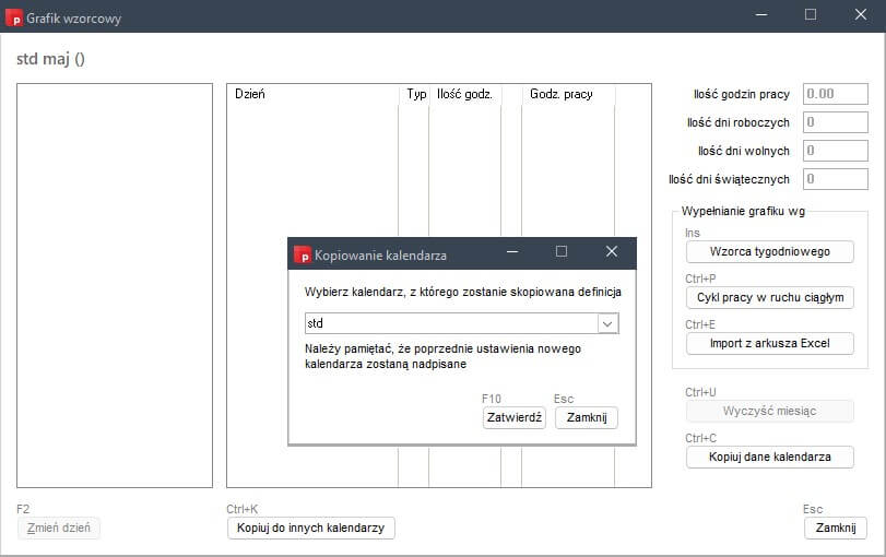 W przypadku gdy pracodawca dopuszcza odbiór dodatkowego dnia wolnego w dowolnym dniu okresu rozliczeniowego, ale dla różnych grupy pracowników, można rozważyć utworzenie nowego kalendarza na podstawie aktualnego za pomocą opcji Kopiuj dane kalendarza.