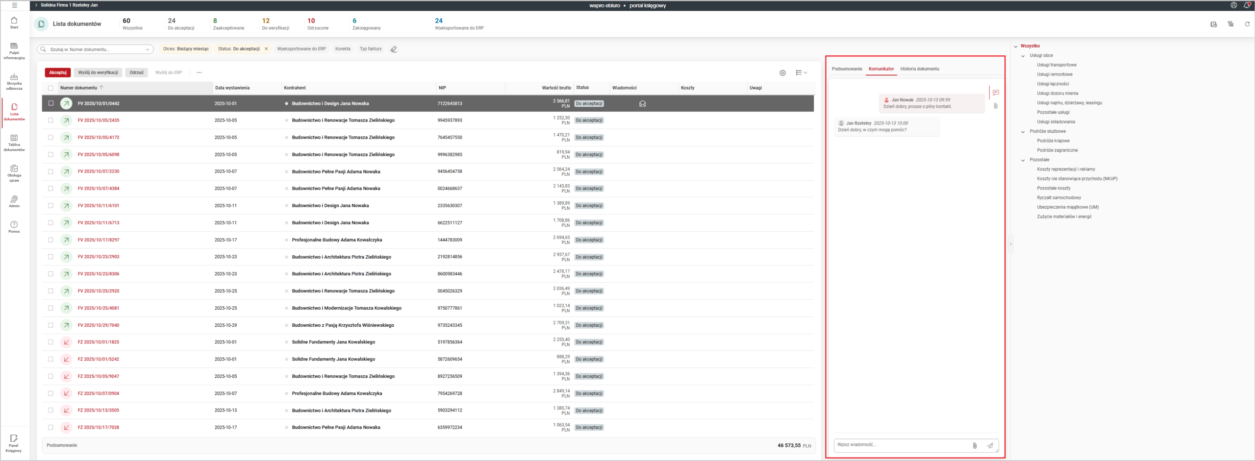 Pamiętaj, że możesz weryfikować i modyfikować dokumenty na każdym etapie ich obiegu. Użytkownicy mogą łatwo odrzucać niepotrzebne lub błędne dokumenty, a w przypadku konieczności wprowadzenia zmian, system umożliwia szybkie edytowanie danych i ponowne przesłanie do księgowania. Takie rozwiązania zwiększają precyzję i bezpieczeństwo operacji finansowych, eliminując ryzyko błędów księgowych.