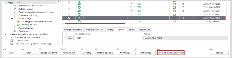 - Weryfikacja i procesowanie. Użytkownik może zweryfikować dokumenty, obejrzeć załączniki, odrzucić je lub zatwierdzić do księgowania. W przypadku braku Wapro eBiuro, można korzystać z Bufora dokumentów Businesslink do oceny poprawności dokumentów.