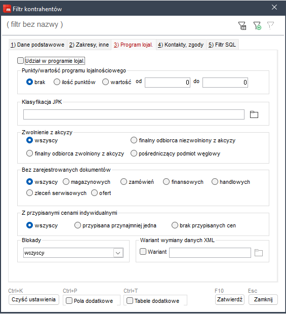 3. Określ dokładnie, jakie dane ma prezentować system: czy ma pokazywać informacje o kontrahentach, którzy nie mają wprowadzonego żadnego czy wybranych dokumentów (magazynowych, zamówień, finansowych, handlowych, zleceń serwisowych, ofert).
