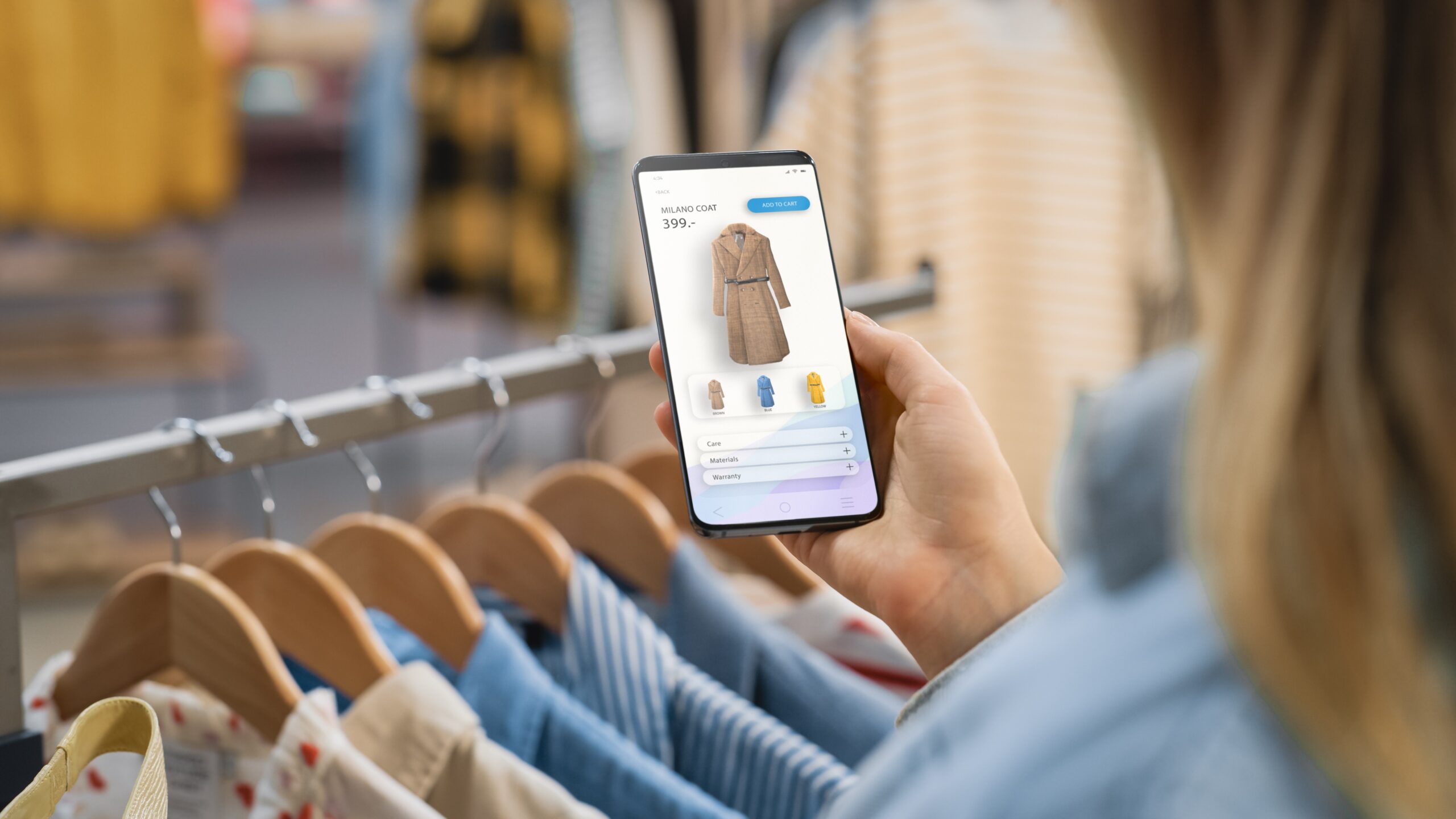 Kobieta korzysta z telefonu komórkowego, aby przeglądać aplikację e-commerce