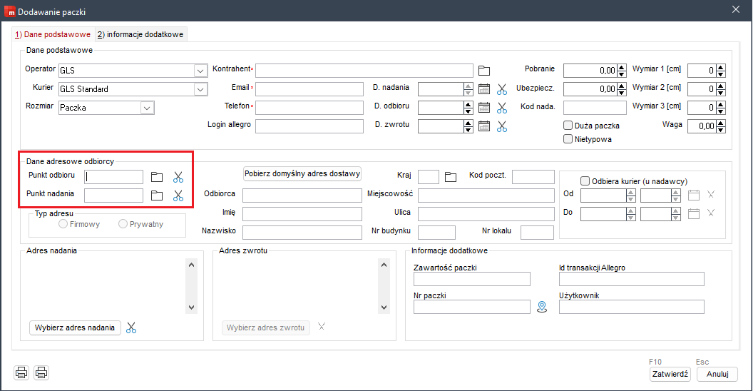 - Zautomatyzowane pobieranie listy punktów kurierskich – nowa funkcja w Wapro Mag umożliwia łatwe i szybkie pobieranie aktualnej listy punktów nadania i odbioru od renomowanych przewoźników takich jak DPD, GLS, Allegro One czy Poczta Polska. To rozwiązanie eliminuje konieczność ręcznego wpisywania lokalizacji, co znacznie skraca czas obsługi przesyłek.