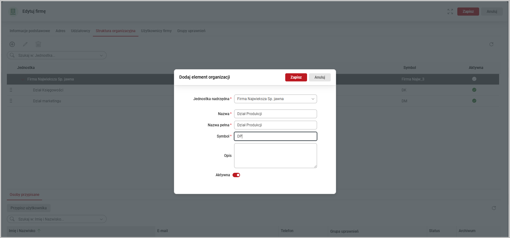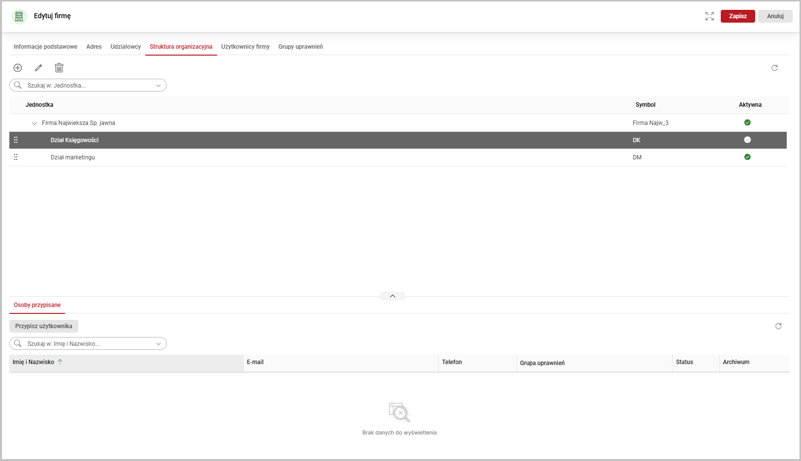 Najważniejszą zmianą jest wprowadzenie modułu Struktury organizacyjnej, który umożliwi tworzenie hierarchicznych struktur działów i jednostek, takich jak Dział księgowości czy Oddziały terenowe. Administratorzy systemu będą mogli definiować role i przypisywać pracowników do poszczególnych jednostek, co usprawni procesy decyzyjne i akceptacyjne.