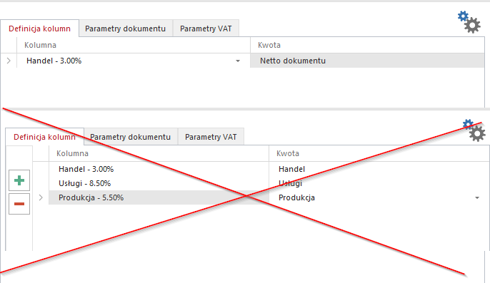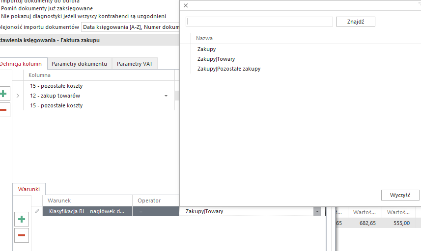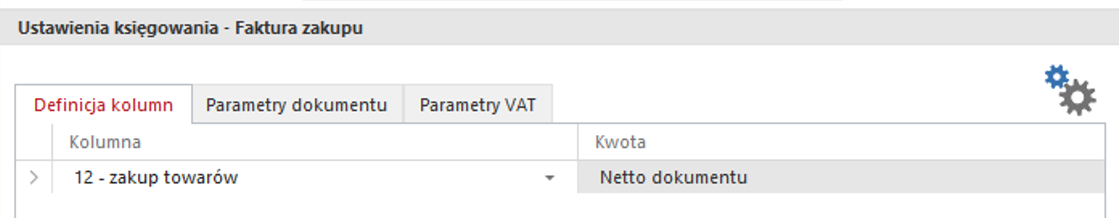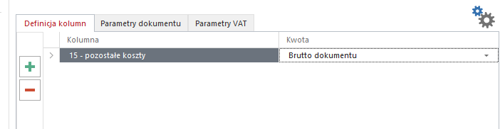 • Definicja kolumn – wybór kolumny lub stawki ryczałtowej oraz rodzaju kwoty importowanej np. netto, brutto.