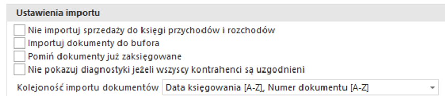 • Kolejność importu dokumentów. Dotyczy sortowania w przypadku zapisów z tego samego dnia.
