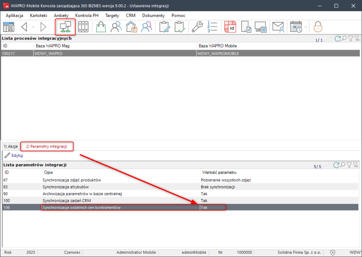 Aplikacja -> Ustawienia integracji -> Parametry integracji -> Synchronizacja ostatnich cen kontrahenta