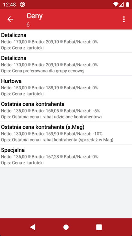 WAPRO Mobile – funkcja „ostatnia cena dla kontrahenta”